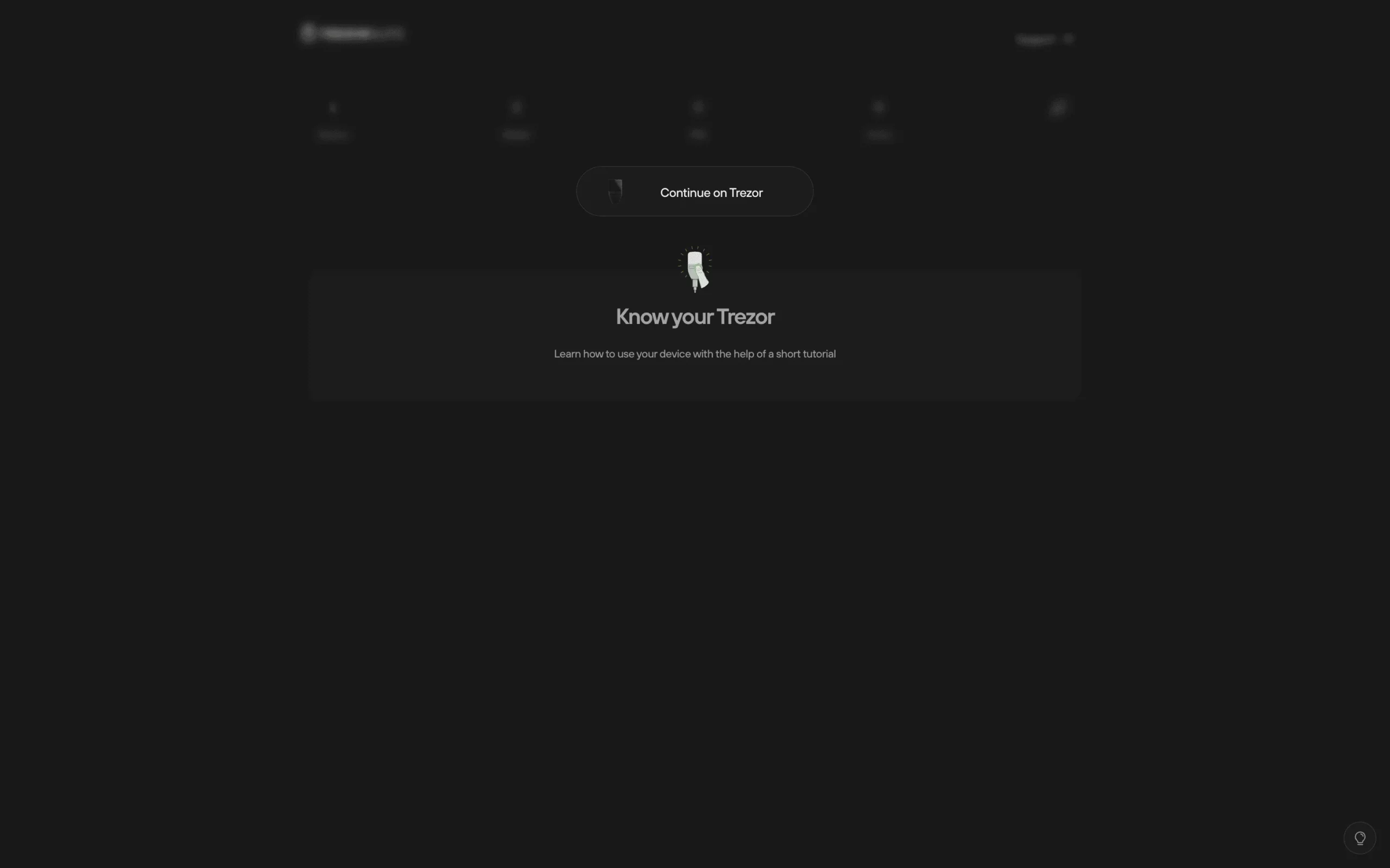 اکنون صفحهی Know your Trezor نمایش داده میشود تا با عملکرد دکمهها و منوی دستگاه آشنا شوید. آموزش را روی دستگاه دنبال کنید و پس از اتمام، Continue را انتخاب کنید.
