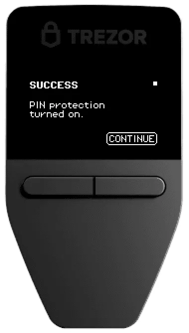 اکنون میتوانید برای افزایش امنیت، رمز PIN تعیین کنید. در پنجرهی Wallet backup complete روی Continue to PIN کلیک کنید و سپس Set PIN را انتخاب کنید. دستگاه از شما میپرسد آیا میخواهید حفاظت PIN فعال شود؟ گزینهی Turn on را بزنید. سپس با استفاده از دکمههای دستگاه عدد دلخواه خود را وارد کنید. موقعیت اعداد در هر بار ورود تغییر میکند تا امنیت بیشتر شود.
