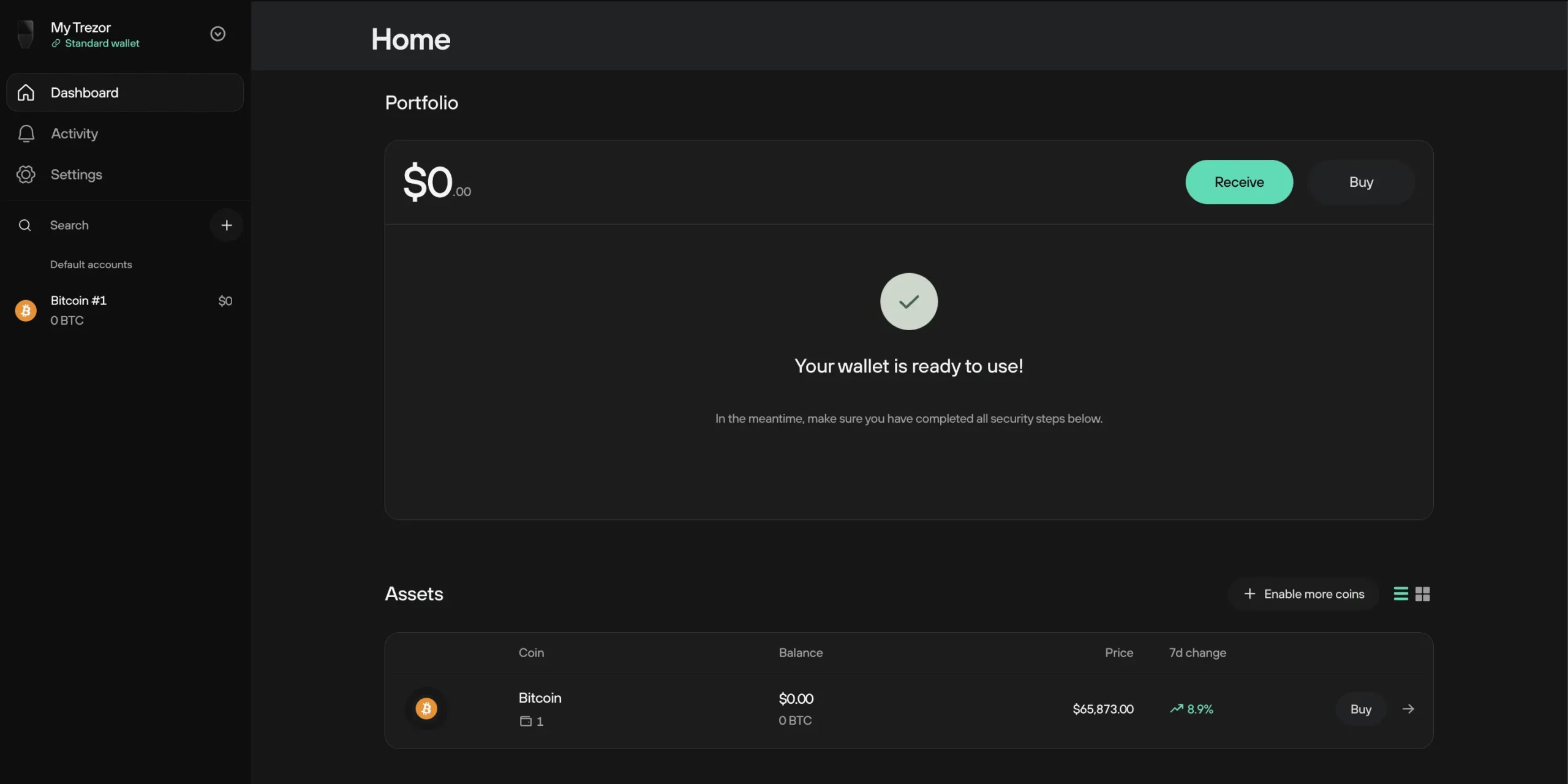 اکنون کیف پول Trezor Safe 3 شما آمادهی استفاده است و میتوانید داراییهای رمزارزی خود را با امنیت کامل مدیریت کنید.