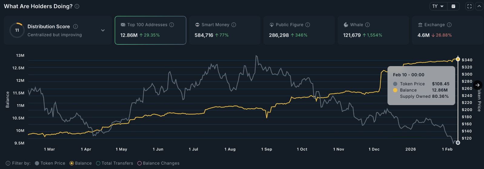در حال حاضر، یکی از مهمترین موضوعات پیرامون پروژه آوه، تنش حاکمیتی میان DAO و تیم توسعه است. این اختلاف بر سر کنترل برند و جهتگیریهای راهبردی، در کوتاهمدت باعث افزایش عدم قطعیت در بازار شده و بخشی از فشار فروش اخیر را میتوان به همین موضوع نسبت داد. در بازار ارز دیجیتال، ریسک حاکمیتی همواره یکی از متغیرهای مهم در تحلیل فاندامنتال محسوب میشود، زیرا سرمایهگذاران نهادی و بازیگران بزرگ به ثبات تصمیمگیری اهمیت ویژهای میدهند. با این حال، دادههای آنچین تصویر متفاوتی ارائه میدهند؛ انباشت توکن توسط هولدرهای بزرگ و اصطلاحاً «دستهای قوی» نشان میدهد که بخشی از بازار این تنش را موقتی ارزیابی میکند و روی حلوفصل آن در میانمدت حساب باز کرده است.