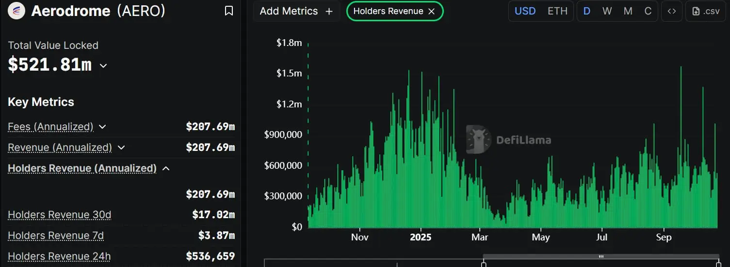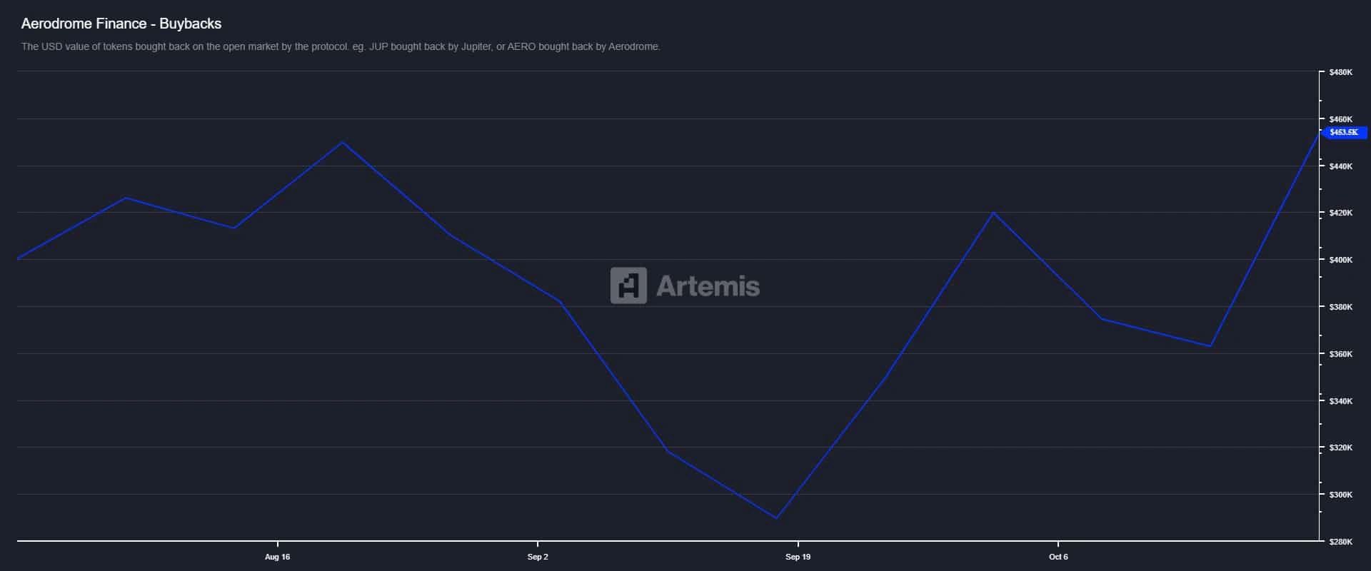 عامل مهم دیگر، اجرای برنامه بازخرید (Buyback) توکن توسط تیم توسعه آئرودروم است. این اقدام که پس از افت مداوم قیمت تا محدوده ۰.۶ دلار آغاز شد، در هفته اخیر به بالاترین سطح سهماهه خود رسیده است. طبق دادههای Artemis، بودجه اختصاصیافته به بازخرید از ۲۸۹ هزار دلار به ۴۵۳ هزار دلار افزایش یافته و رشد ۱۳ درصدی را ثبت کرده است. از آنجا که بازخرید توکنها موجب کاهش عرضه در گردش و در نتیجه افزایش فشار تقاضا میشود، این اقدام میتواند نقشی مشابه با سیاستهای انقباضی در اقتصاد ایفا کند و زمینه رشد قیمتی را فراهم آورد. این استراتژی در عین حال پیامی روشن از سوی تیم پروژه به بازار مخابره میکند: اعتماد به پایداری و ارزش ذاتی توکن AERO در بلندمدت.