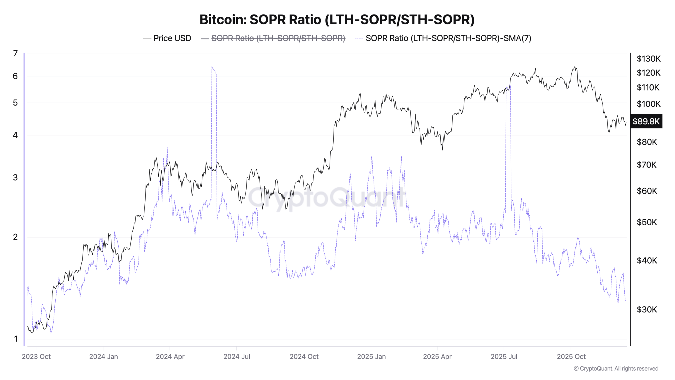 این وضعیت دقیقاً همان چیزی است که در تحلیل ۱۳ روز پیش هم به آن اشاره شد. آنجا گفته شد که بازار افت کرده، اما پول از بازار خارج نشده است. حالا دادههای جدید این حرف را تأیید میکند. نسبت زیان معاملهگران کوتاهمدت به بلندمدت به سطوحی رسیده که آخرین بار در ابتدای موج صعودی سال ۲۰۲۳ دیده شده بود. آن زمان، بیتکوین بعد از یک دوره فرسایشی، وارد یک روند صعودی چندماهه شد.