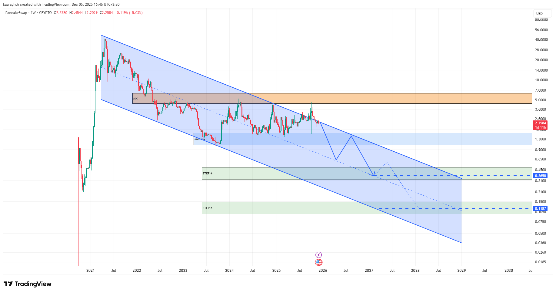در نهایت، اگرچه شبکه پنکیک‌سوآپ از نگاه بنیادی در حال تقویت است، اما تا زمانی که سطح ۵ دلار در تایم‌فریم ۶ ماهه شکسته نشود، چارت هیچ نشانه‌ای از تغییر روند نشان نمی‌دهد. تنها شکست معتبر این ناحیه می‌تواند سناریو نزولی را بی‌اعتبار کند و مسیر را برای استقرار قیمت بالای ۶ تا ۸ دلار باز نماید. تا قبل از این اتفاق، هر رشد صرفاً یک اصلاح در دل روند نزولی است.