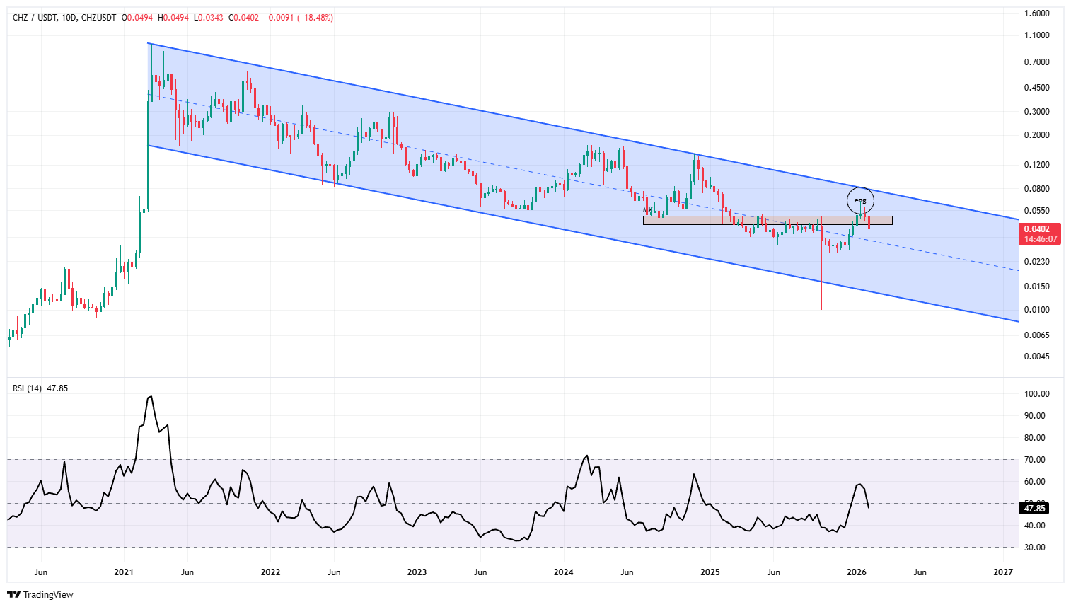 این روزها جو حاکم بر بازار کریپتو جوی نزولی و قرمز رنگ است. بیت کوین تا محدوده ۶۰ هزار دلار پایین آمد و بسیاری از آلت کوینها دنبالهروی پرچمدار بازار، ریزشهایی را تجربه کردند. اما با تمامی این شرایط تصمیم گیرفتم تا تنها با اتکا به اصول تحلیل تکنیکال یکی از آلت کوینهایی که نظرم را جلب کرده، تحلیل کنم. CHZ ارزی است که آن هم مشابه با دیگر آلت کوینها ریزش داشته است و از قیمت 0.064 تا 0.035 دلار نزدیک به ۵۰ درصد از ارش خود را از دست داده است. اما تفاوتی که این ارز با دیگر ارزها دارد، حرکتی است که پیش از این ریزش داشته است.