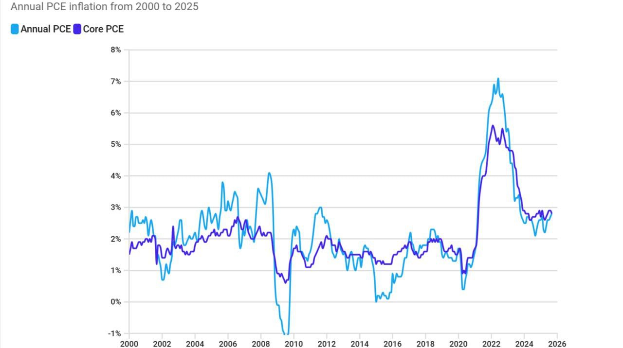 محرک دوم این تحلیل، شرایط کلان اقتصادی است که این روزها وزن بسیار بیشتری نسبت به گذشته در قیمتگذاری داراییهای پرریسک دارد. دادههای جدید PCE نشان داد که تورم در سطح ۲.۸٪ باقی مانده؛ مقداری بالاتر از هدف فدرال رزرو و هنوز «چسبنده». اما نکته تعیینکننده اینجاست که بازار پیش از انتشار این داده نگران سناریوی افزایش دوباره نرخ بهره بود. زمانی که گزارش دقیقاً مطابق انتظار منتشر شد، ترس از سیاست انقباضی بیشتر کنار رفت و انتظارات برای کاهش نرخ بهره مجدداً تقویت شد.