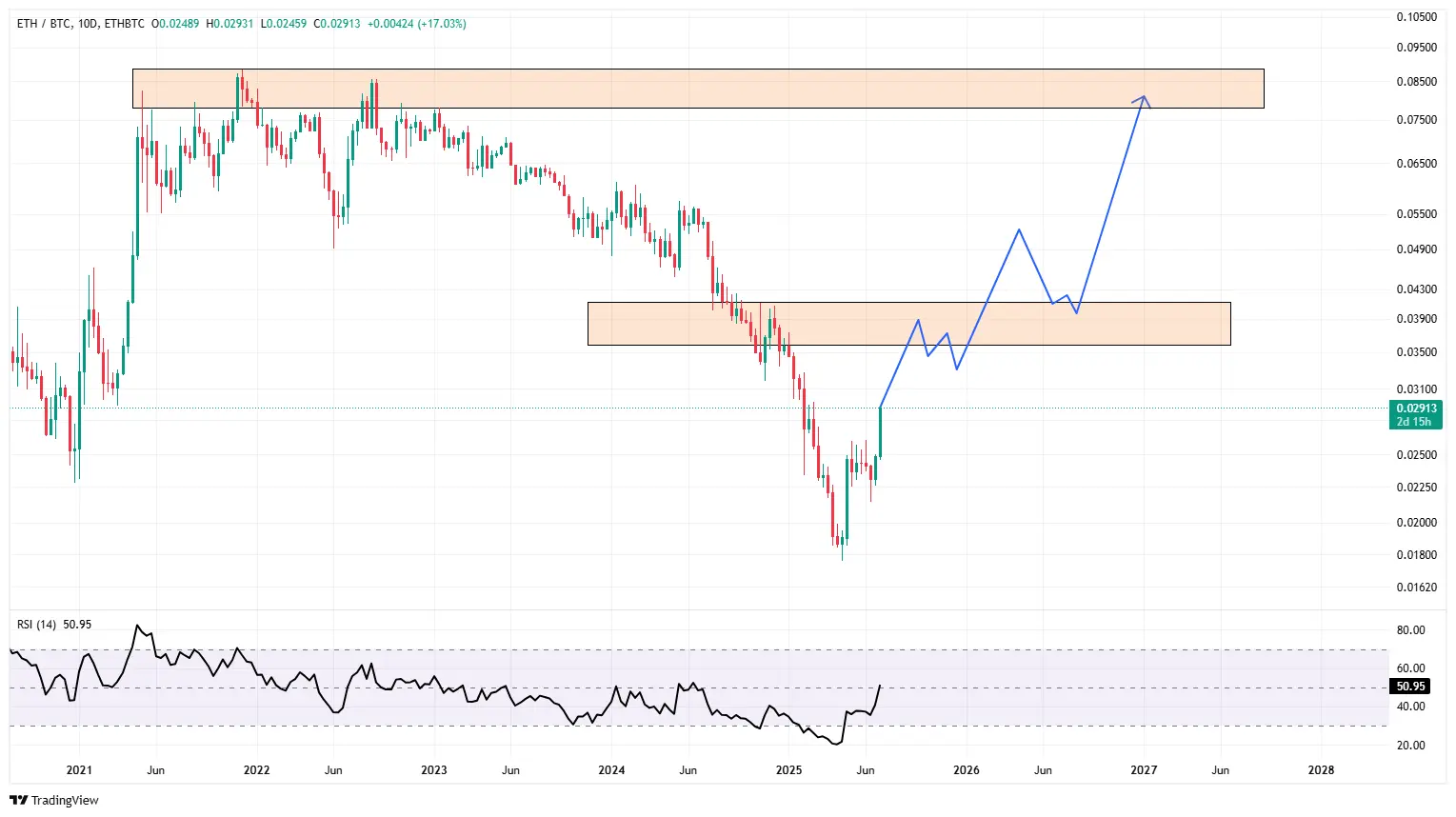نسبت ETH/BTC آماده جهش ۵۰ درصدی؛ آیا اتریوم رهبر موج بعدی بازار می‌شود؟