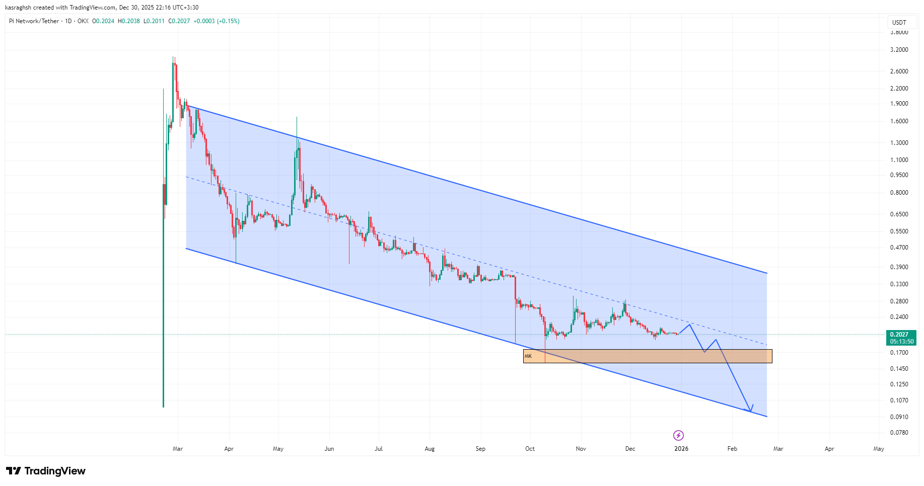 در ادامه تحلیل تکنیکال پای نتورک، لازم است اخبار اخیر منتشرشده درباره این پروژه را در همان چارچوب نزولی بررسی کنیم؛ چرا که دادههای فاندامنتال کوتاهمدت در این مقطع نهتنها در تضاد با ساختار چارت نیستند، بلکه آن را تأیید میکنند. بر اساس اطلاعات منتشرشده، قیمت توکن PI در محدوده ۰.۲۰۲ دلار در حال نوسان است؛ سطحی که همچنان حدود ۹۳ درصد پایینتر از سقف تاریخی قرار دارد و نشان میدهد بازار هنوز وارد فاز بازیابی معنادار نشده است. این موضوع زمانی اهمیت بیشتری پیدا میکند که بدانیم حجم معاملات روزانه پای نتورک در حال حاضر حدود ۱۰ میلیون دلار است؛ عددی که برای پروژهای با این سطح از شناختهشدگی، نقدشوندگی ضعیفی محسوب میشود و میتواند باعث تشدید نوسانات در زمان افزایش عرضه شود.