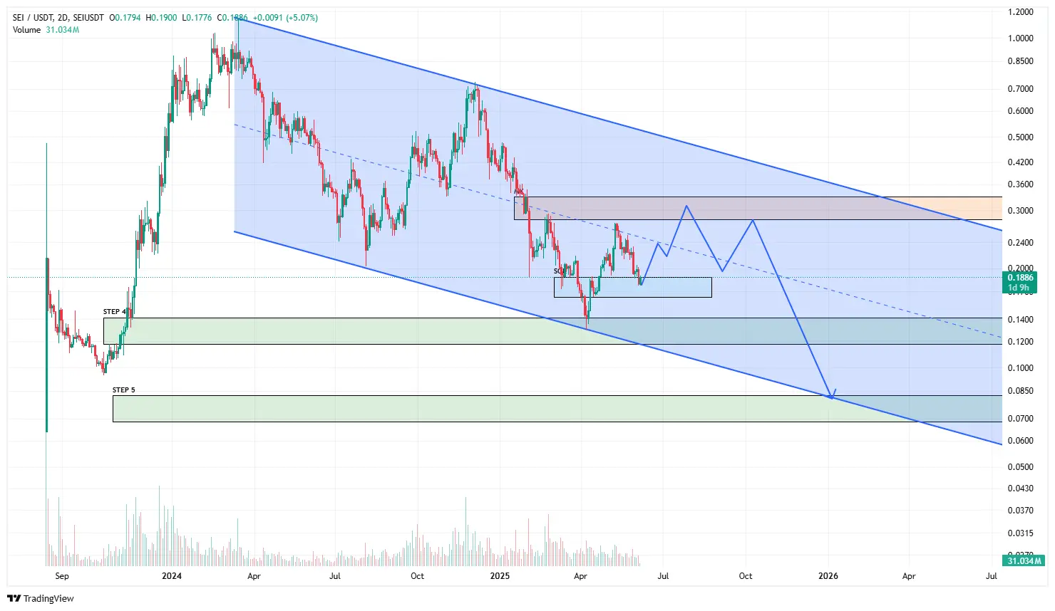 در تحلیل خرداد، زمانی که SEI حوالی ۱۳ تا ۱۷ سنت معامله میشد، بخش زیادی از بازار نگاه نزولی مطلق داشت. با وجود این فضا، ساختار قیمتی نشان میداد که رمزارز در انتهای لگ نزولی بلندمدت خود قرار گرفته و در حال آمادهسازی برای یک حرکت اصلاحی است.