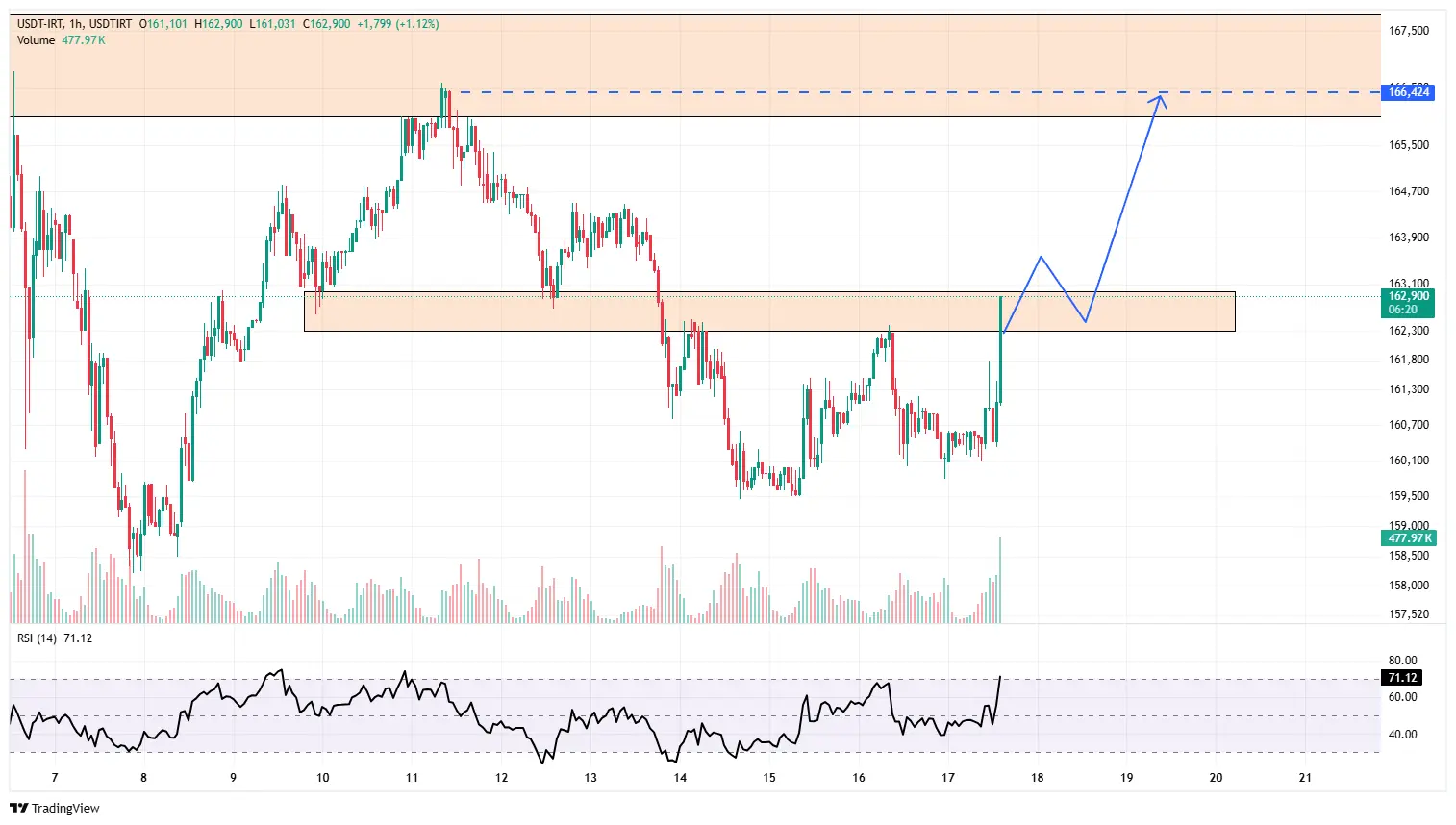 سه روز پیش در تحلیلی که درباره تتر نوشتم، تأکید اصلی روی محدوده ۱۶۲ هزار و ۵۰۰ تومان بود؛ سطحی که بهعنوان مهمترین مانع برای رسیدن قیمت به سقف قبلی در حوالی ۱۶۶ هزار تومان معرفی شد. سناریو کاملاً مشخص بود؛ اگر تحت تأثیر اخبار و فضای هیجانی، این مقاومت شکسته شود، میتوان انتظار یک حرکت سریع و پرنوسان تا سقف قبلی را داشت.