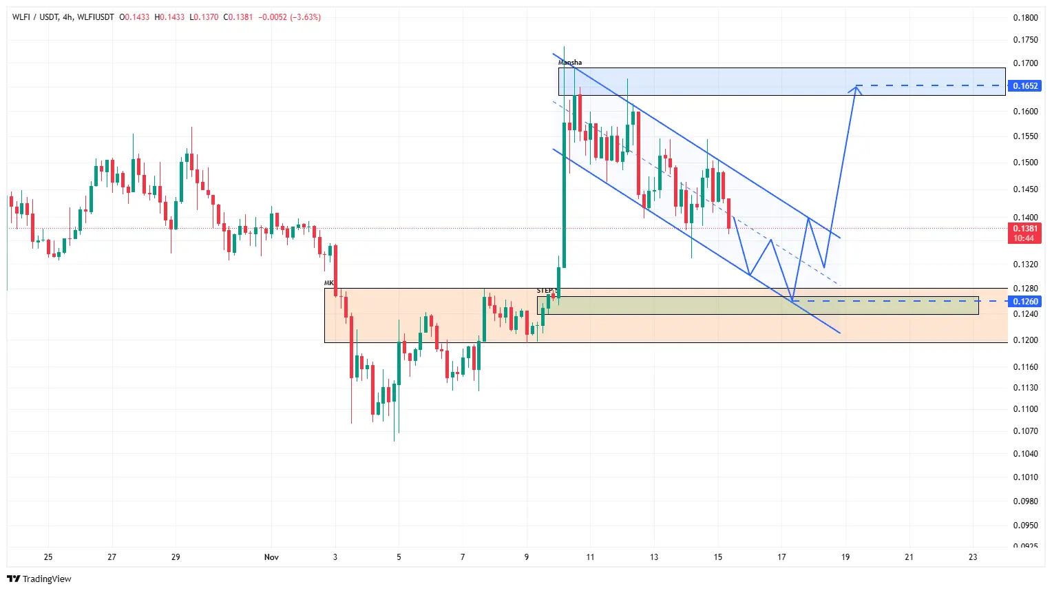 روندی که یک هفته قبل روی آن دست گذاشته بودیم، دقیقاً همانطور که انتظار میرفت عمل کرد. محدوده ۱۲ تا ۱۳ سنت را بهعنوان گره تصمیمگیری و محل ورود تقاضا مشخص کرده بودیم و هشدار داده بودیم که اگر بازار یک ستاپ برگشتی بدهد، شانس یک لانگ کمریسک تا محدوده ۰.۱۶ دلار وجود دارد. همان اتفاق افتاد و بازگشت مورد انتظار بهطور کامل محقق شد؛ WLFI از کف 0.1127 تا سقف 0.1457 دلار نزدیک به ۳۰ درصد رشد کرد.