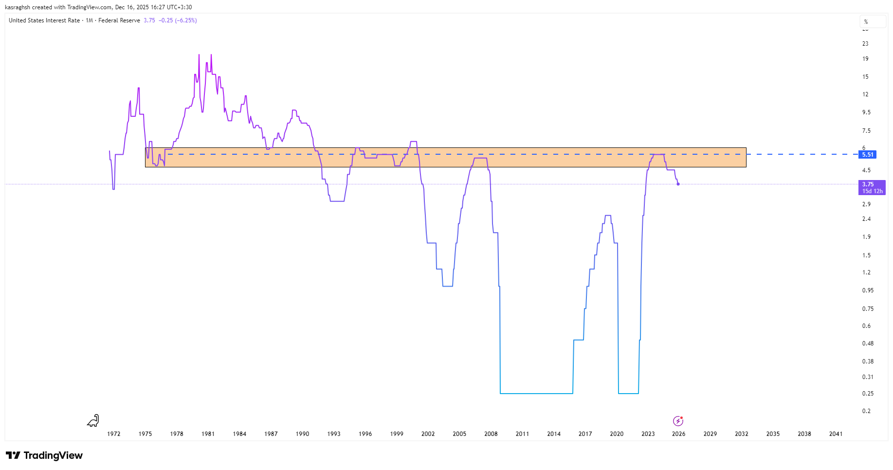 از منظر فاندامنتال نیز شرایط به نفع طلا و در نتیجه تترگلد است. فدرال رزرو با کاهش نرخ بهره به محدوده کمتر از ۴ درصد رسماً وارد فاز easing شده و پیام روشنی به بازار داده است. در چنین شرایطی، داراییهای بدون بازده مانند طلا دوباره جذاب میشوند، چرا که هزینه فرصت نگهداری آنها کاهش پیدا میکند. این موضوع بهخصوص در سال ۲۰۲۶ میتواند یکی از موتورهای اصلی ادامه روند صعودی انس باشد.